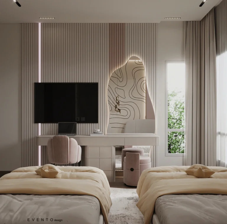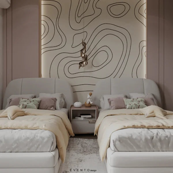 يتميز السرير بخطوط انسيابية ولمسات بسيطة تضيف إحساسًا بالفخامة والدفء في آنٍ واحد.