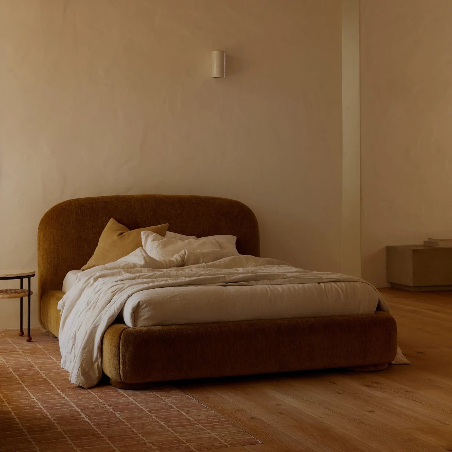 يتميز السرير بخطوط انسيابية ولمسات بسيطة تضيف إحساسًا بالفخامة والدفء في آنٍ واحد.